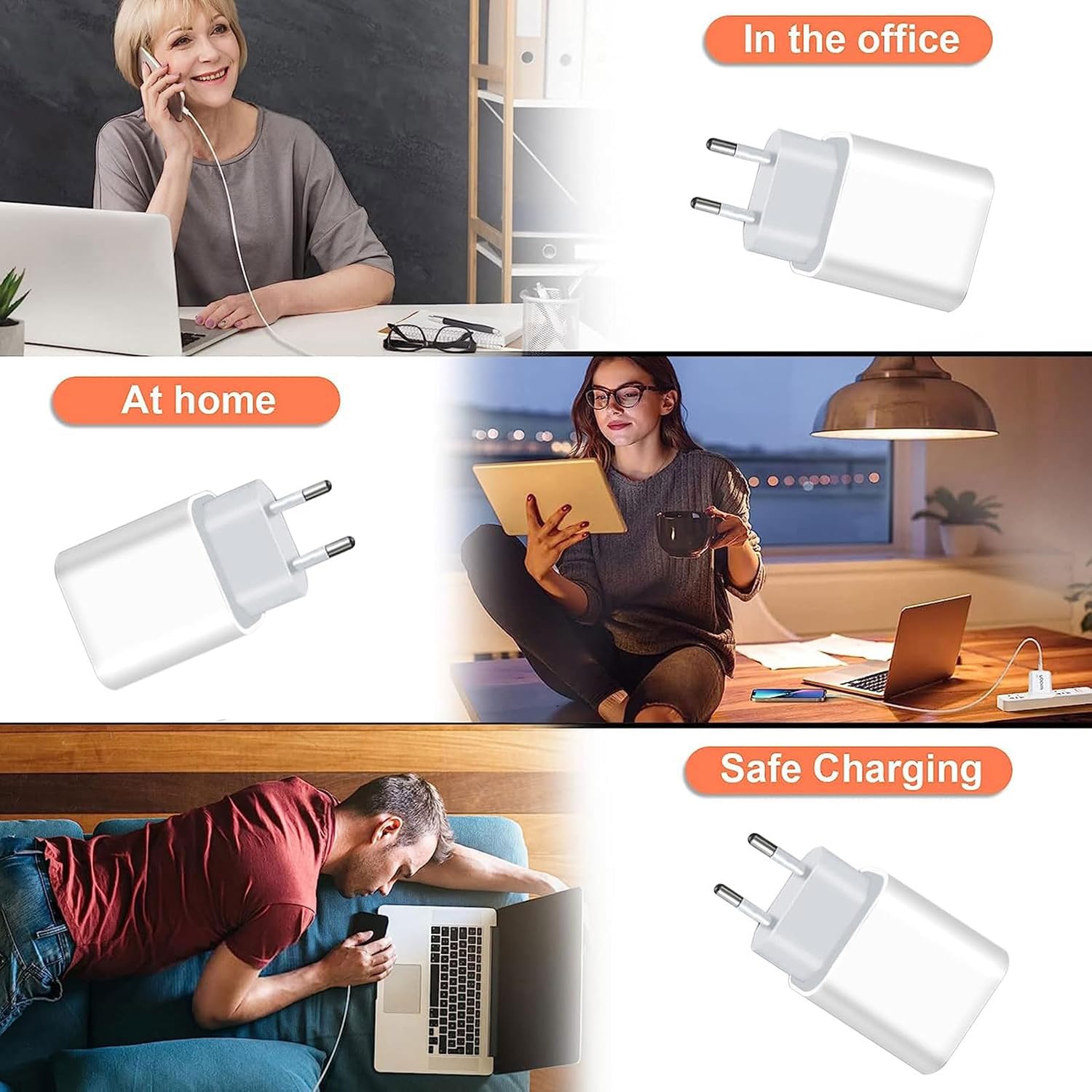 Wide compatibility: the USB-C charger supports L-Phone 16/15/14/14 Plus/14 Pro/14 Pro Max/13/13 Pro Max/12/12 Mini/12 Pro/12 Pro Max/11/11 Pro/11 Pro Max/XS/XS Max/XR/X/8/7/6, iPad Pro 11 inch 20.5 cm 020/iPad Air 3 10.5 inch and all standard smartphones/tablets