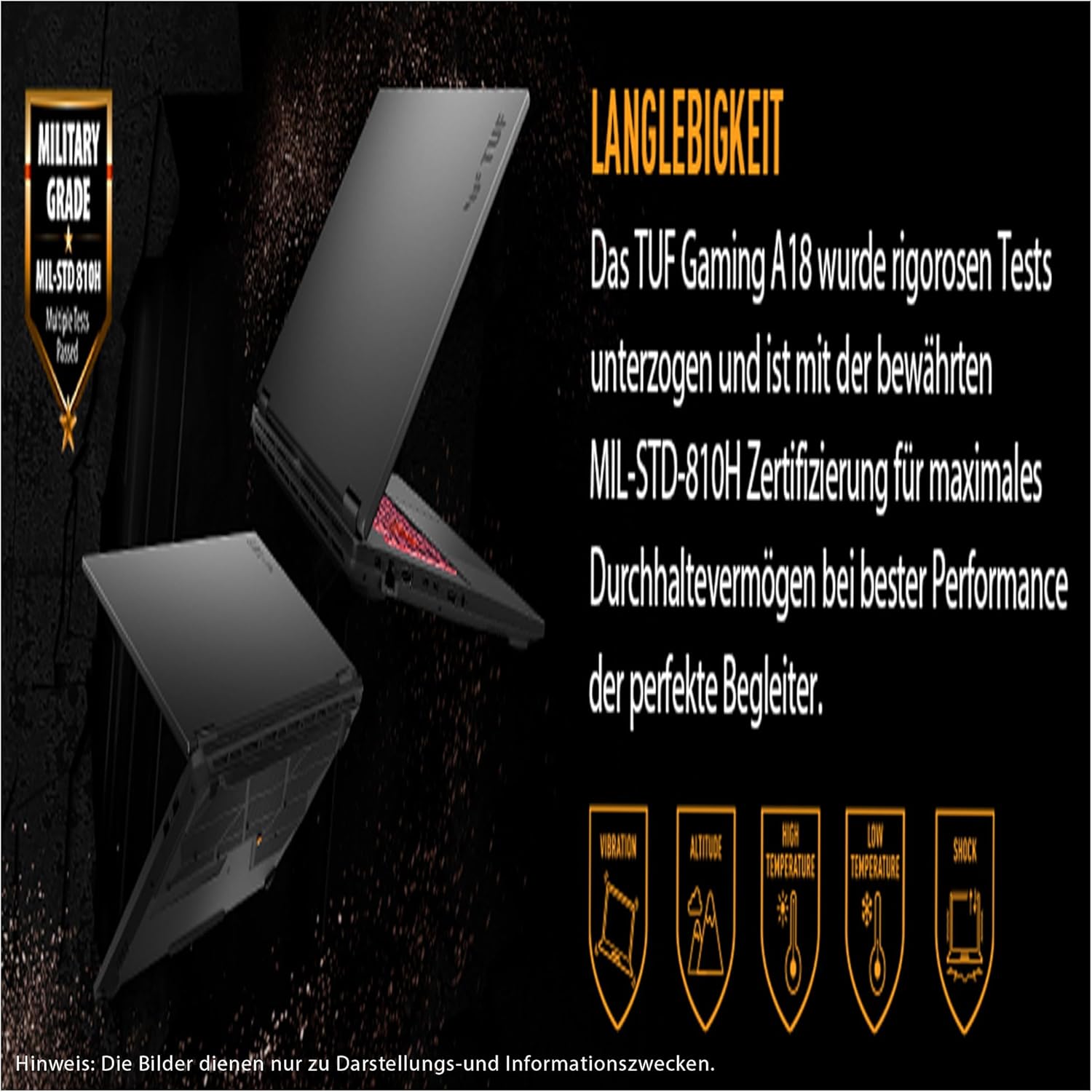 ASUS TUF A18 Gaming Laptop, AMD Ryzen 7 260, 32 GB DDR5 RAM, 1 TB PCIe SSD, 18 Inch FHD (1920 x 1200) Display, Nvidia GeForce RTX 5050 Graphics, RGB QWERTZ Keyboard, Windows 11 Home, Jaeger Grey