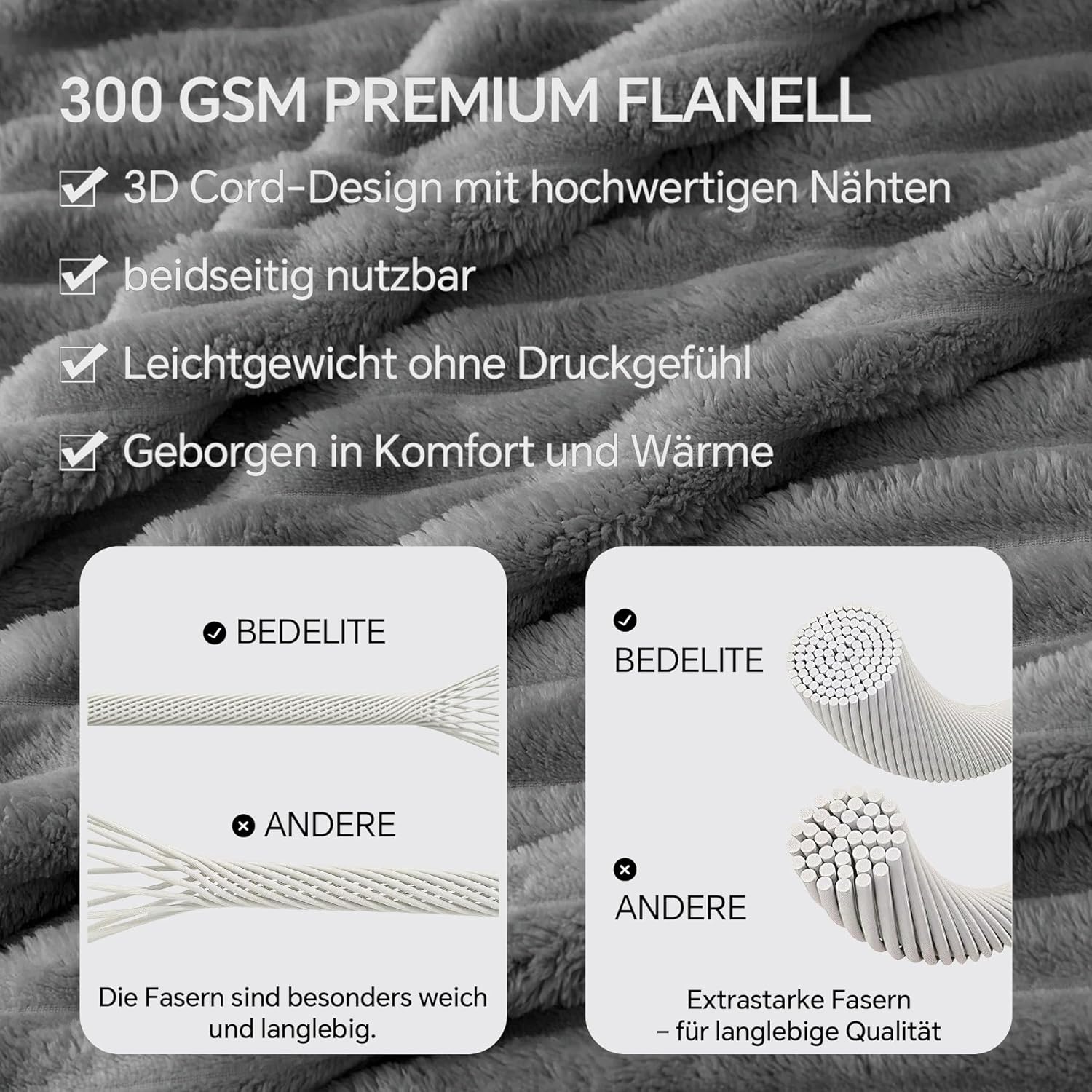 BEDELITE Cuddly Fluffy Blanket Small – Soft Flannel Blankets Grey 125 x 150 cm for Sofa, Decorative Stripes Cord Fleece Blanket as Sofa Throw for Living Room, Throw Blanket Wide Use