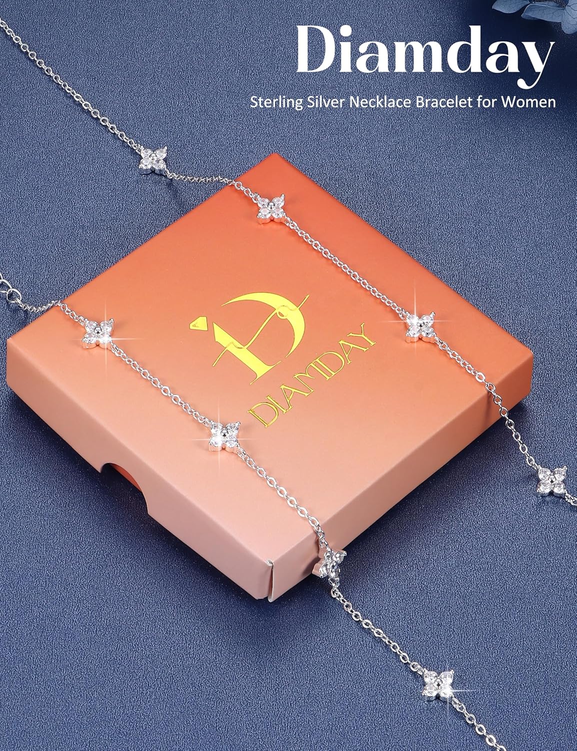 Diamday Women’s 925 Silver Necklace Bracelet Gold Silver Jewellery Set Adjustable Choker Chain Bracelet Set with Zirconia Fashion Jewellery Wedding Bridal Jewellery Set Silver 925 Women