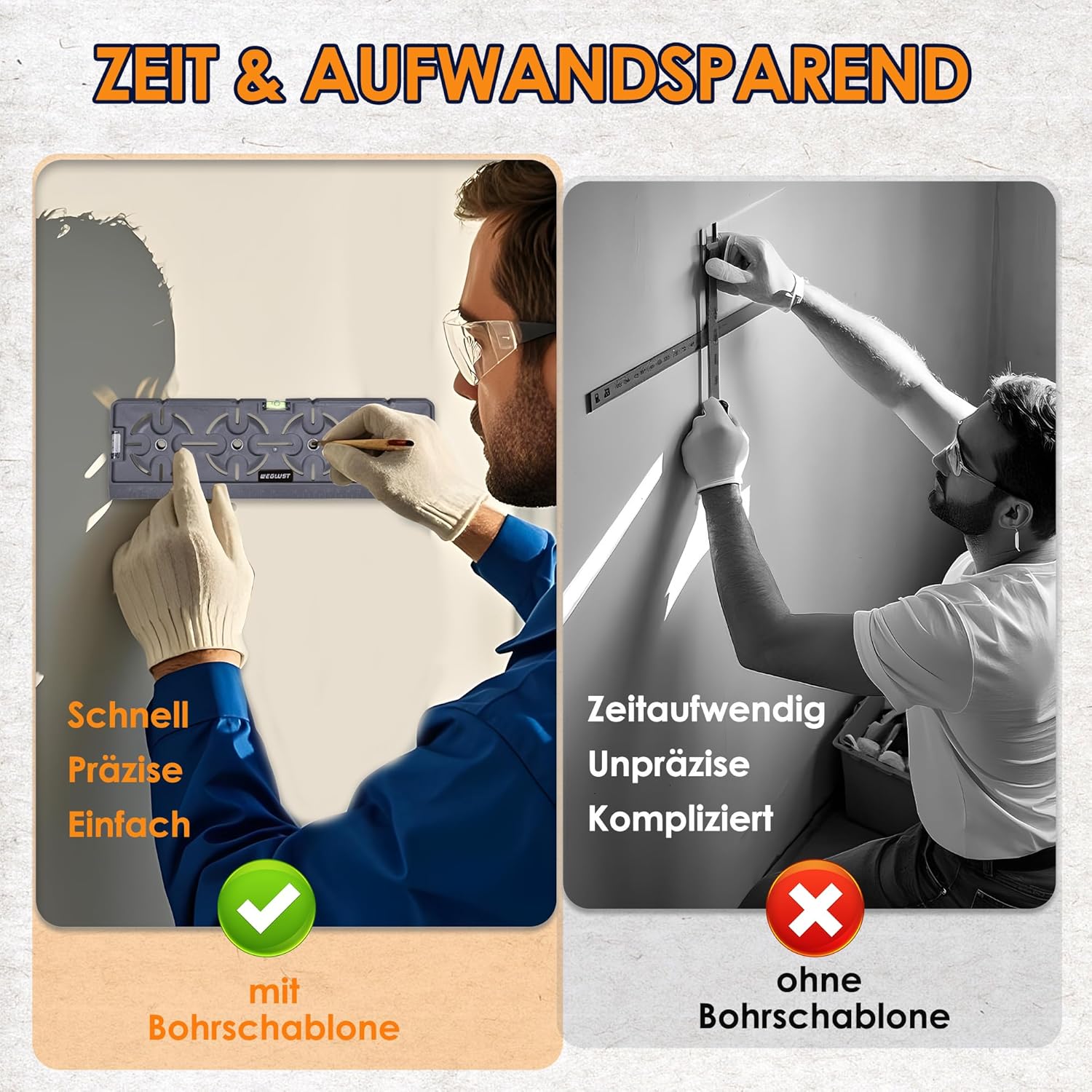 Compact size and lightweight design: the drilling aid for drywall measures only 31 x 9.5 cm and weighs approx. 140 grams, fits in any work bag and is perfect for on the go