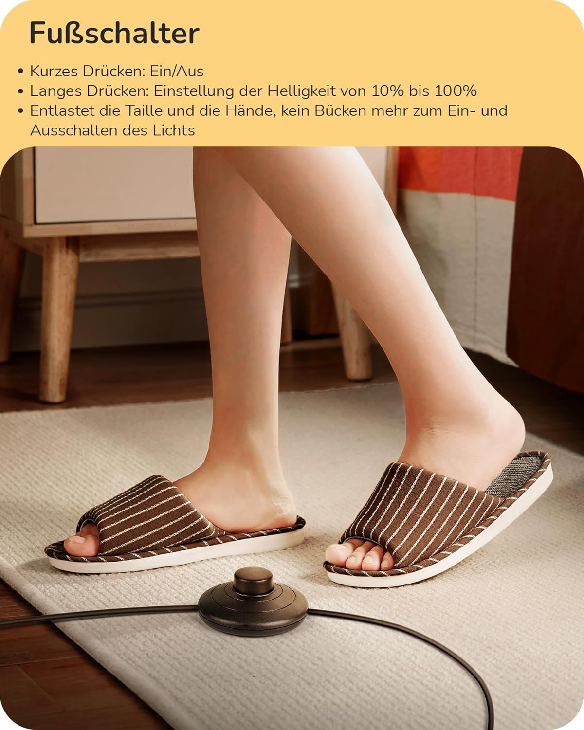 Durch den Fußschalter am Kabel brauchen Sie sich nicht zu bücken, um das Licht dimmen und ein- oder auszuschalten.