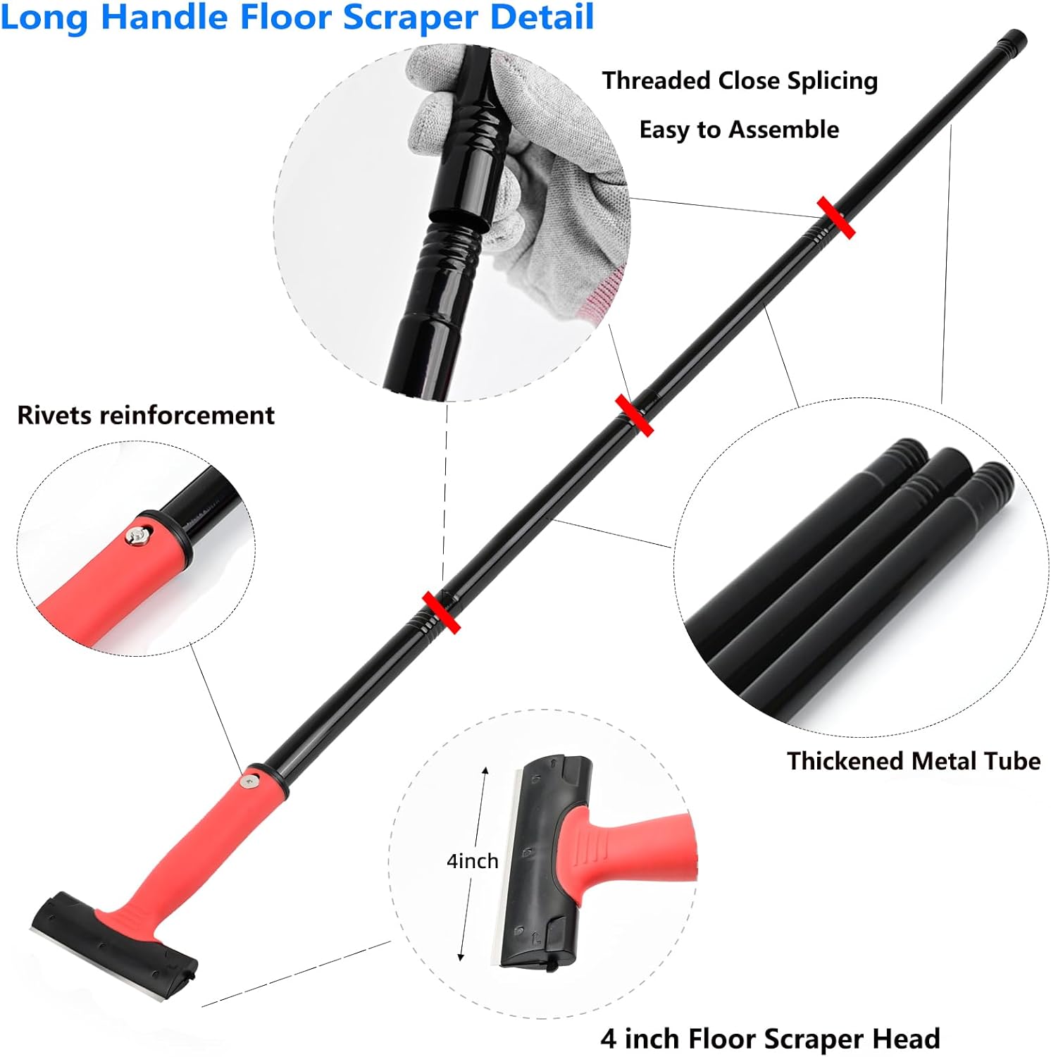 EHDIS Wallpaper Remover Kit – Window Scraper with Extendable Handle (120 cm), 30 Replacement Blades and Gloves, for Removing Wallpaper and Floor Tile Adhesive, Paint, Decals, 4 Inches