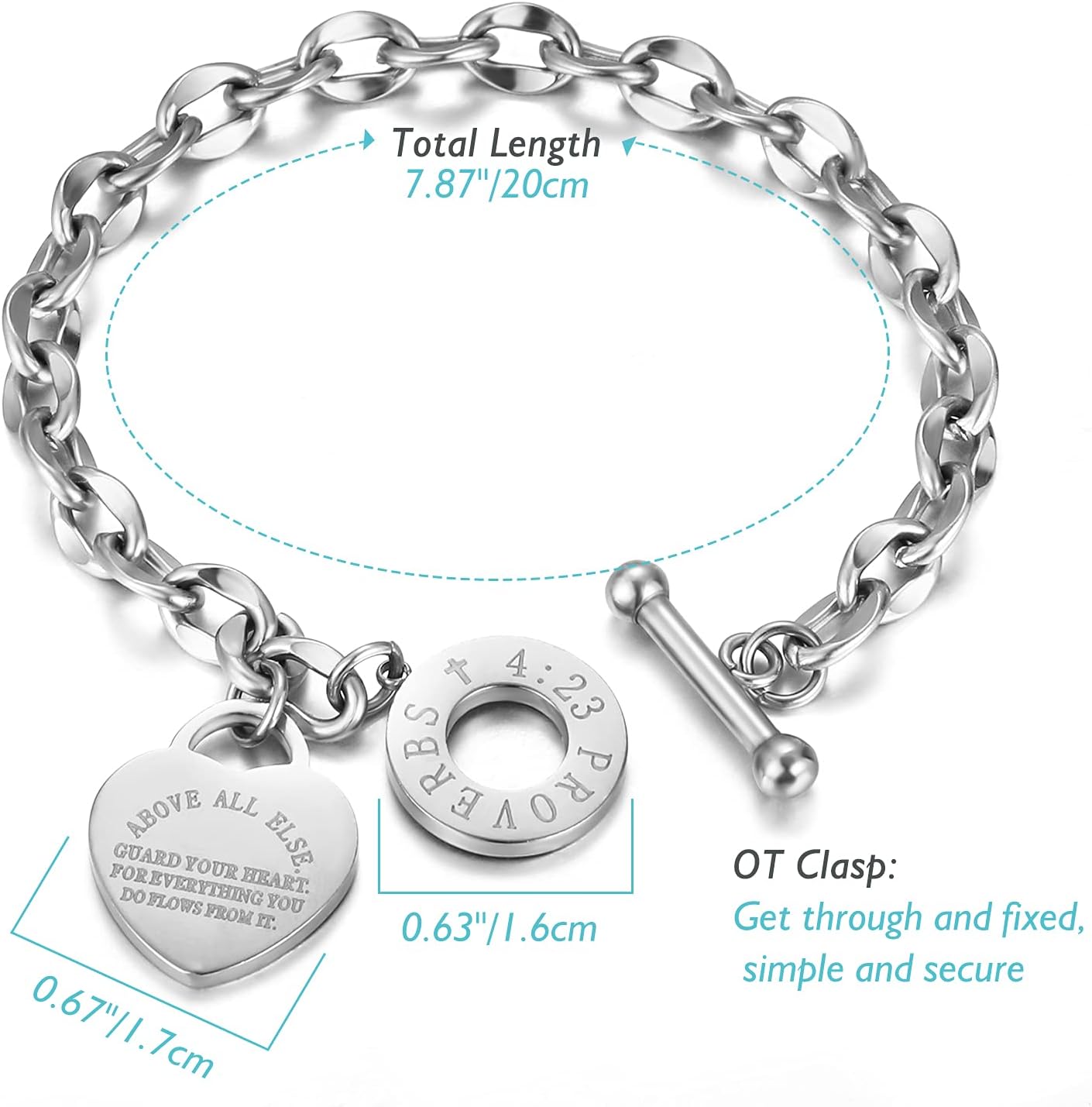 Emibele Charm Bracelet with Engraving, Stainless Steel Link Bracelet with OT Buckle for Women Girls Parties Birthday Valentine’s Day Mother’s Day