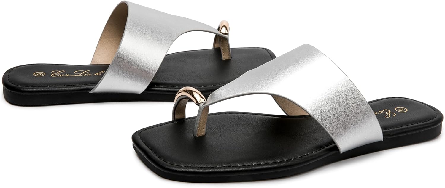 Eozlink Women’s Toe Ring Flat Slide Sandals – Slip-On Open Toe Thong Flip Flops, Casual Summer Beach Sandals