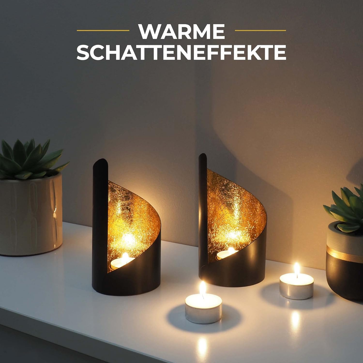Warm light effect – Thanks to the golden inside of the gold tea lights, warm light is reflected that invites you to relax. So you turn your living room into a real oasis of well-being