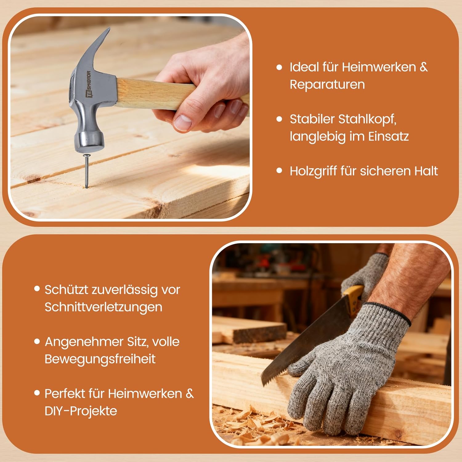 Box contents: the personalised gifts for men contains 1 ruler, 1 carpenter’s pencil, 1 gloves, 1 spirit level and 1 metal hammer. This craftsman gifts woodworking tool set is perfect for DIY enthusiasts, can engrave your name.