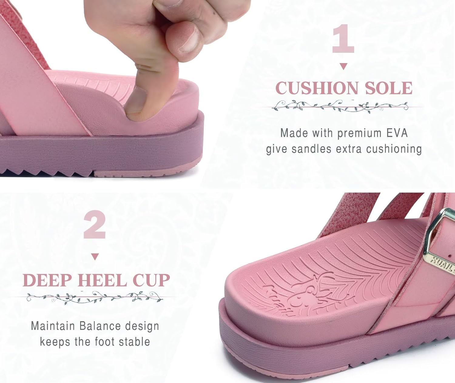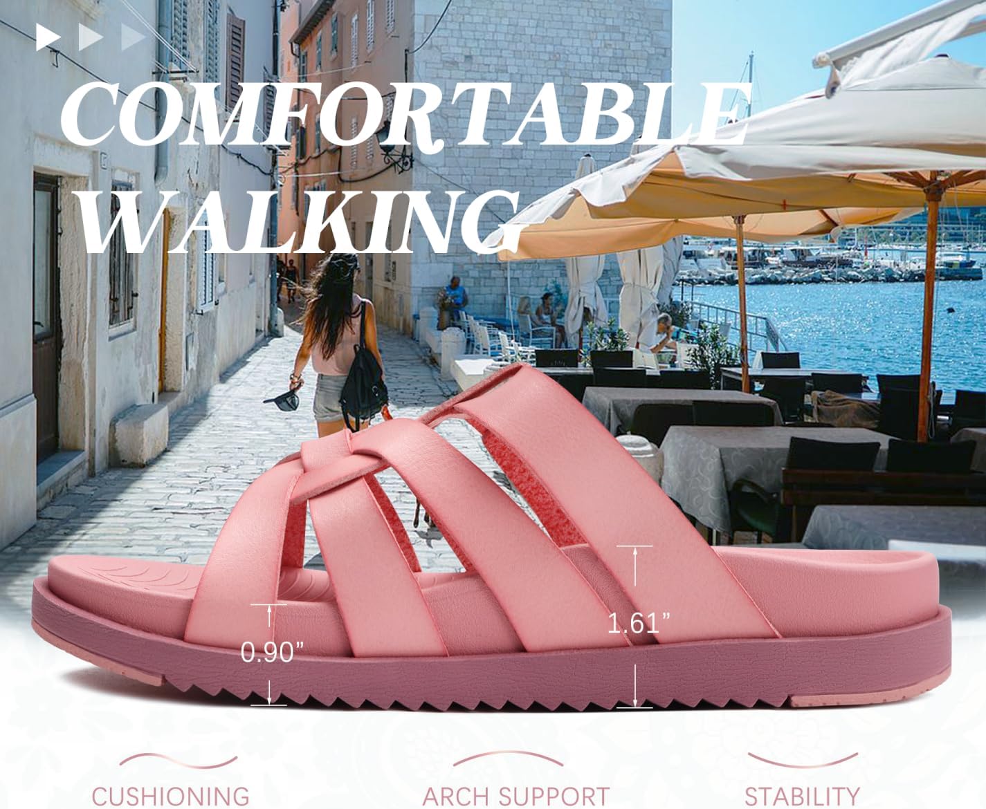 KuaiLu Gladiator Sandals for Women with Comfortable Arch Support Summer Beach Vacation Walking Travel Fisherman Slides Boho Outfits Flats Slip on Cushion Shoes Indoor Outdoor
