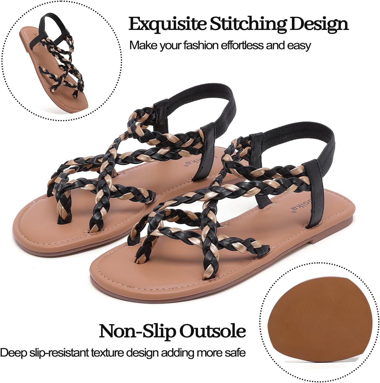 Luoika Women’s Wide Width Flat Sandals, Flip Flop Casual Strapy Sandals Slip on Summer Beach Shoes for Women.