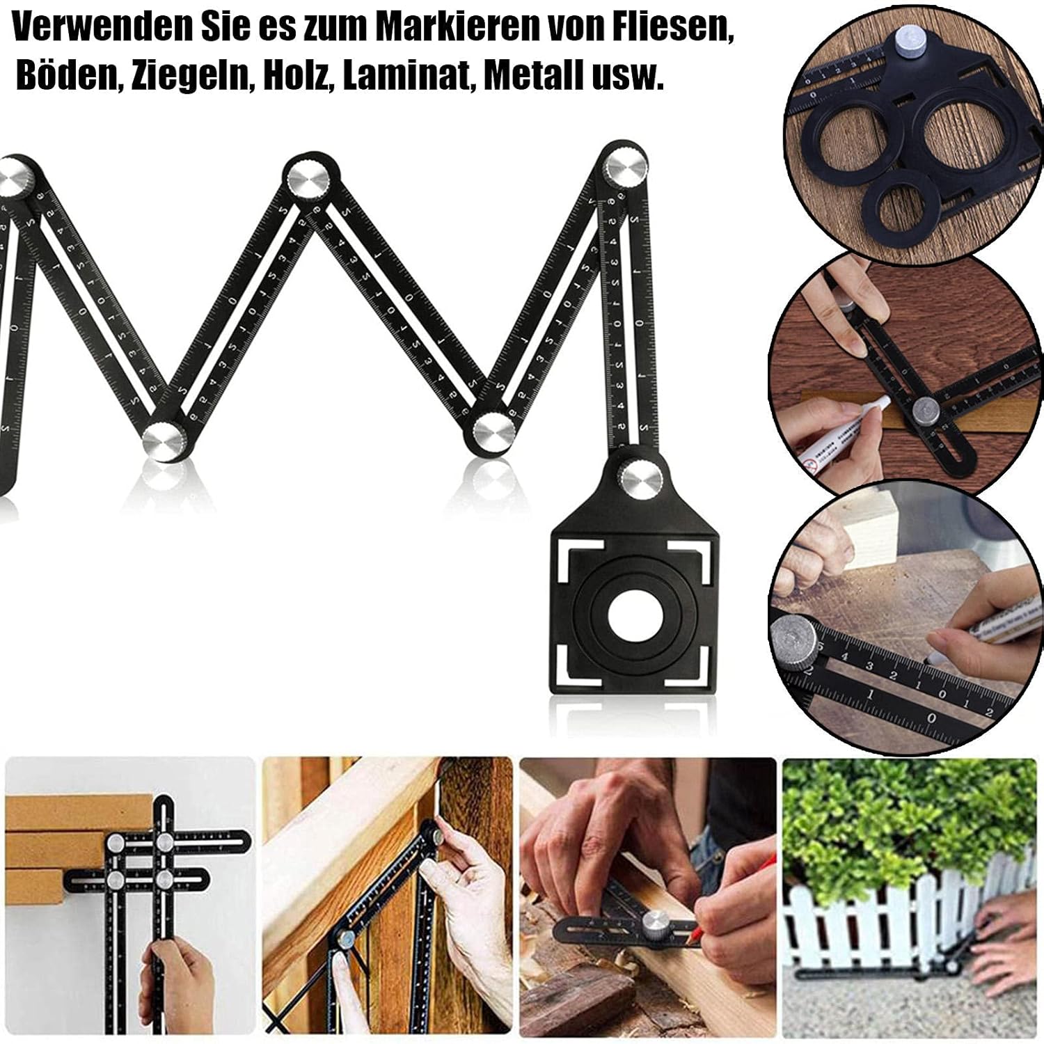 Foldable, portable, durable and fully equipped. With the angle template ruler, you can create multi-angle layouts in seconds and use it for measuring and marking on tiles, stone, wood, laminate and more. It is a thoughtful gift for designers, craftsmen, builders, craftsmen, carpenters