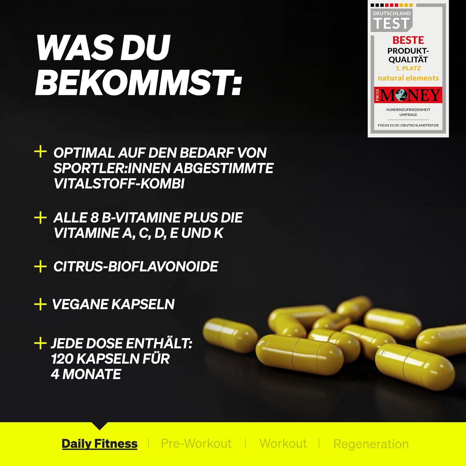 natural elements Daily Vitamins – 120 Multivitamin Capsules – All Valuable Vitamins A-K – Perfect for Athletes – Vegan, High Dose, No Unnecessary Additives – Produced in Germany & Laboratory Tested