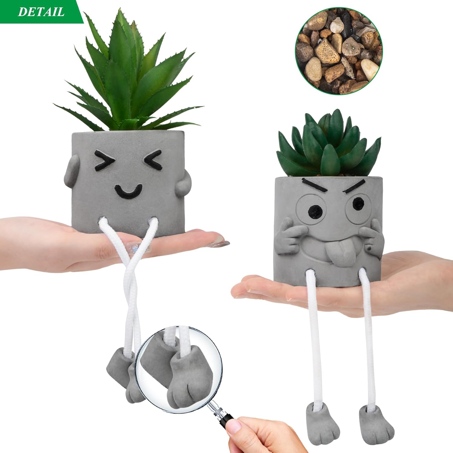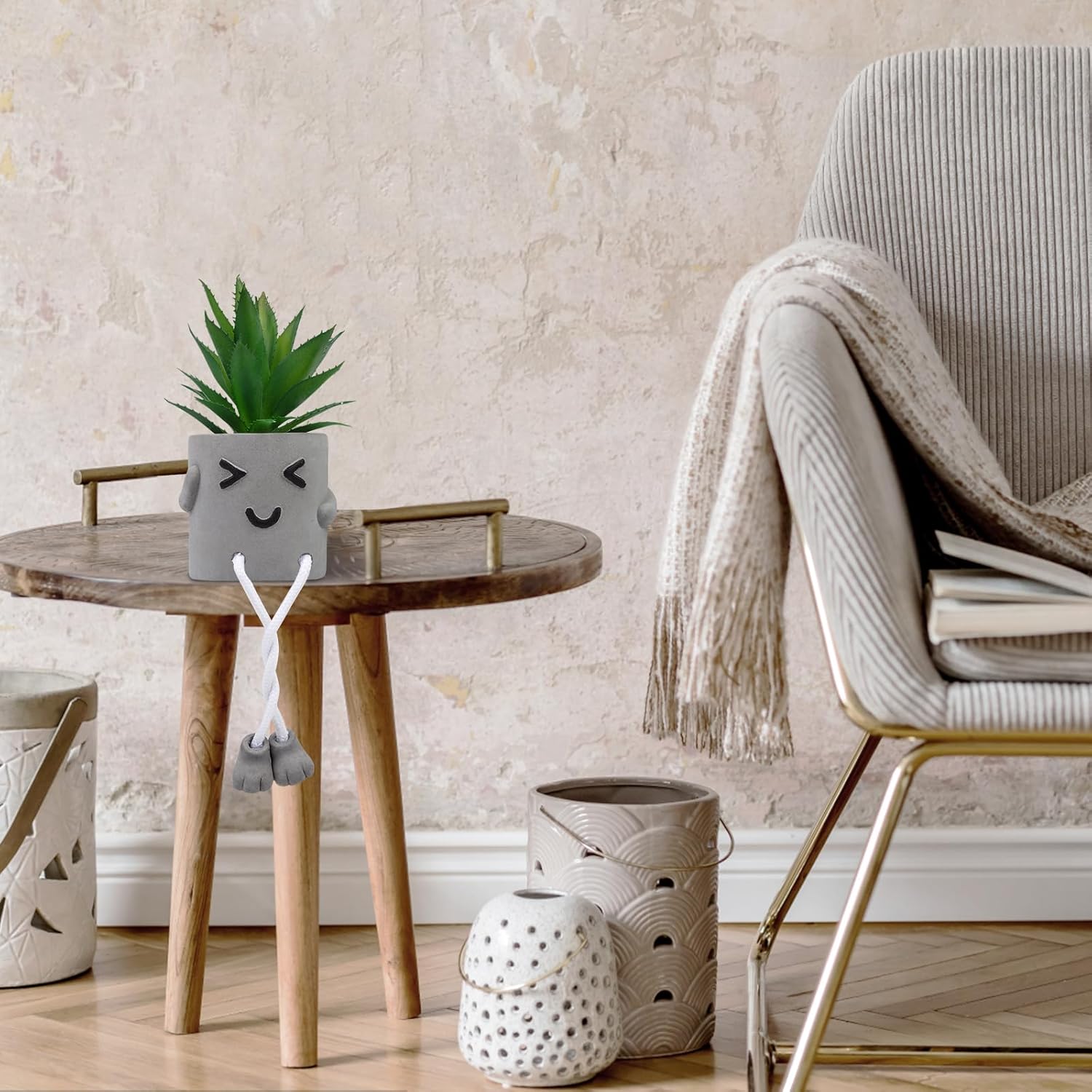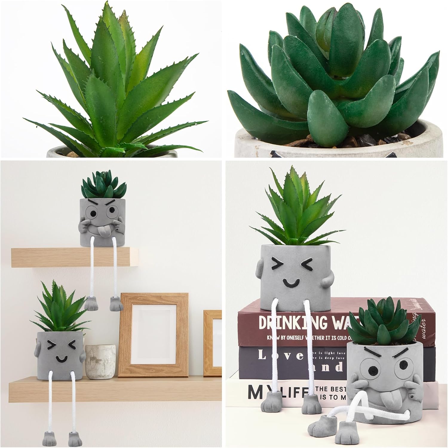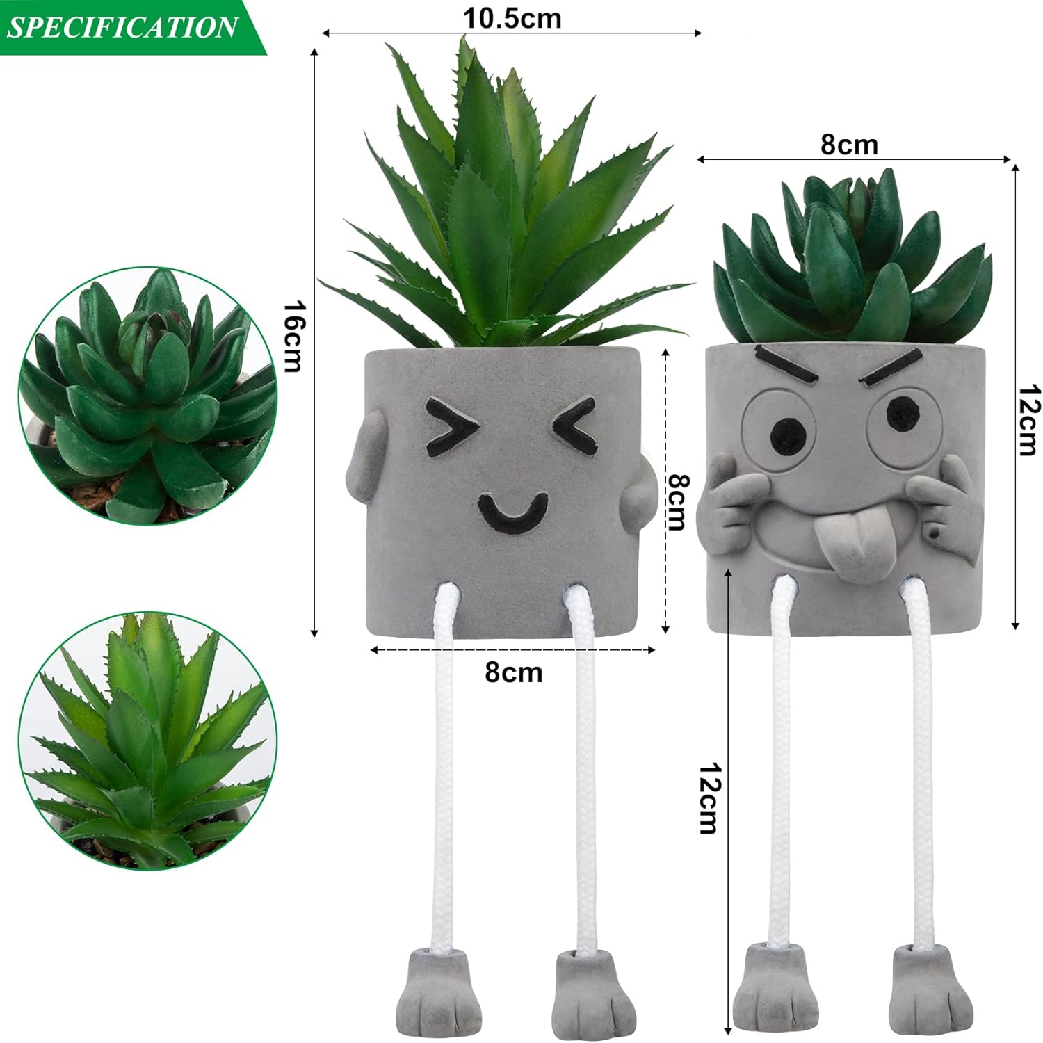 Unique design: By combining lifelike artificial succulents with a unique hanging foot design and grey cement pots, these enchanting artificial plants provide a visually eye-catching and realistic appearance. The addition of fun emoji designs gives the artificial plants made of cement uniqueness and a touch of fashion