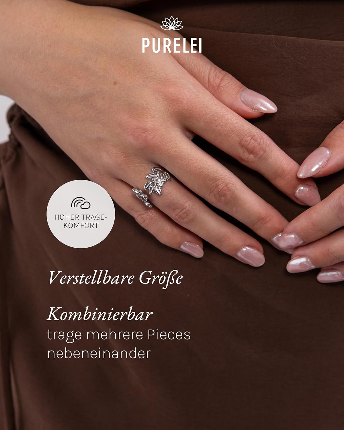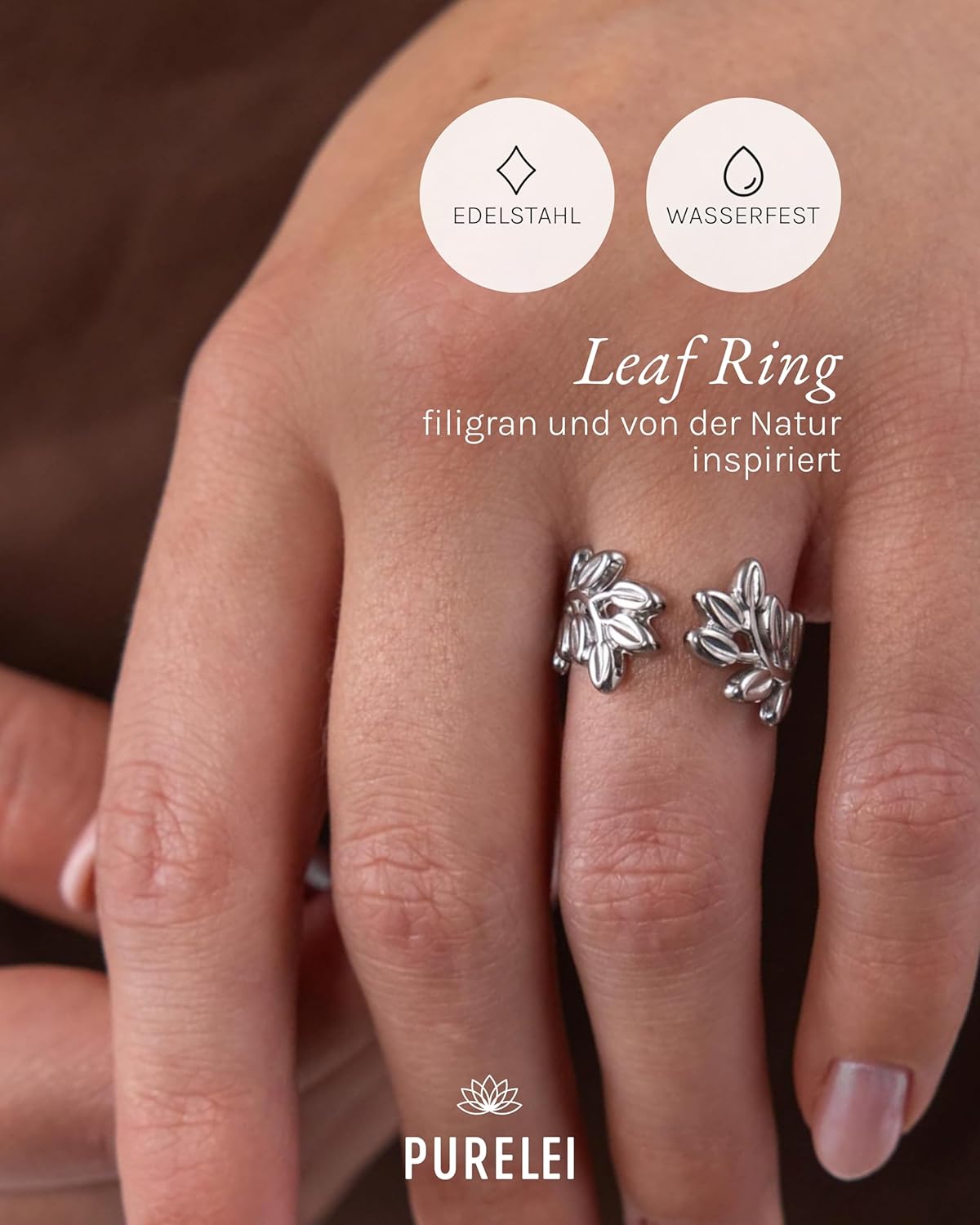 Purelei® Leaf Ring – Fidget – Women’s Durable Stainless Steel Ring – Waterproof Rings – Adjustable Sizes Available from 50-60 – Women’s Jewellery – Leaf Design