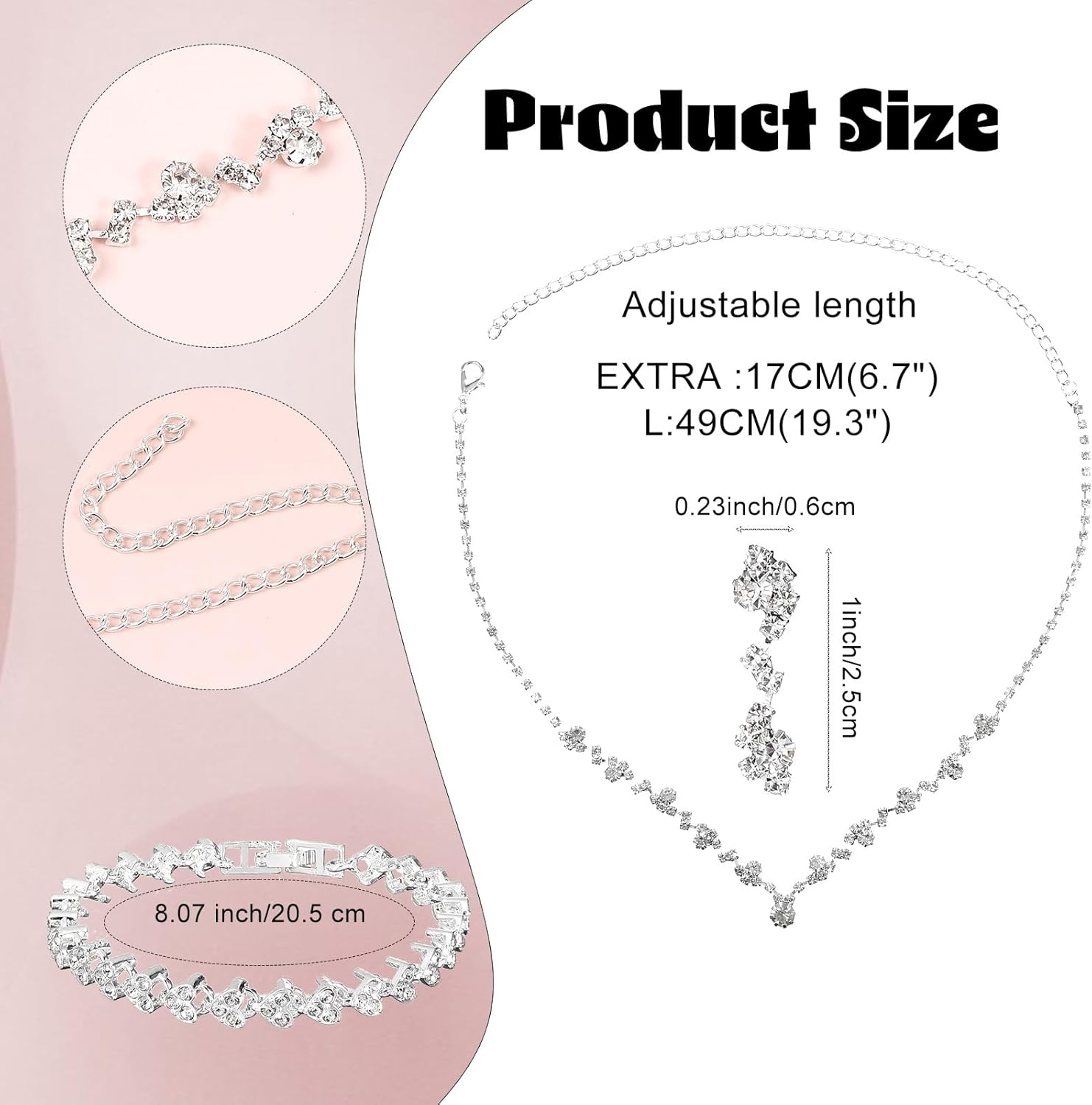 Be the first to review “Silver Jewellery Set for Women Necklace Silver Earrings Hanging Jewellery Set Bridal Jewellery Crystal Rhinestone Necklace Bracelet Jewellery Set for Bride and Bridesmaid Women’s Jewellery”