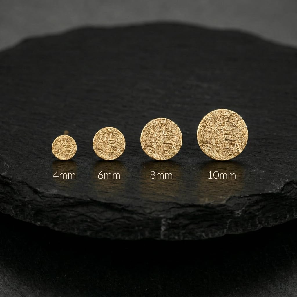 A piece of jewellery handmade with love and care has something incredibly special and timeless in itself. These gold stud earrings round 8 mm are available in the 3rd generation of goldsmiths lovingly handmade – no pair is the same. The signature ice matte finish made of genuine 925 sterling silver, high quality gold plated, adds a touch of elegance and sophistication to any outfit. With a diameter of 8 mm, the stud earrings are just the right size: present enough to stand out – subtle enough to suit any occasion. Whether everyday wear, office or special evening – these earrings are your reliable companion. The 925 silver is nickel-free and skin-friendly, so even people with sensitive ears can wear these stud earrings without hesitation. Thanks to the use of 100% recycled sterling silver, this jewellery is also a sustainable choice. Are you looking for a gift for birthday, Mother’s Day, Christmas or any other special occasion? These stud earrings come in a high-quality gift box and are the ideal gift for anyone who loves simple, high-quality jewellery. Available in sizes 4 mm, 6 mm, 8 mm and 10 mm as well as in various colours.