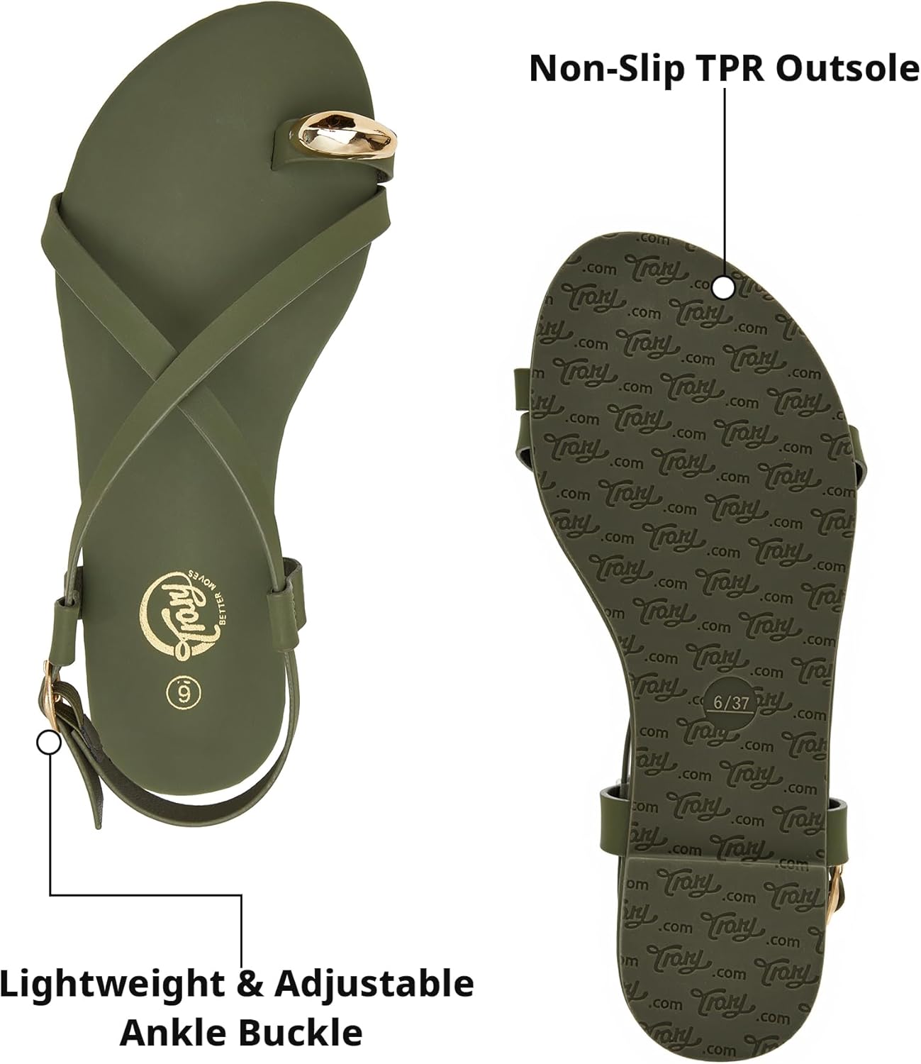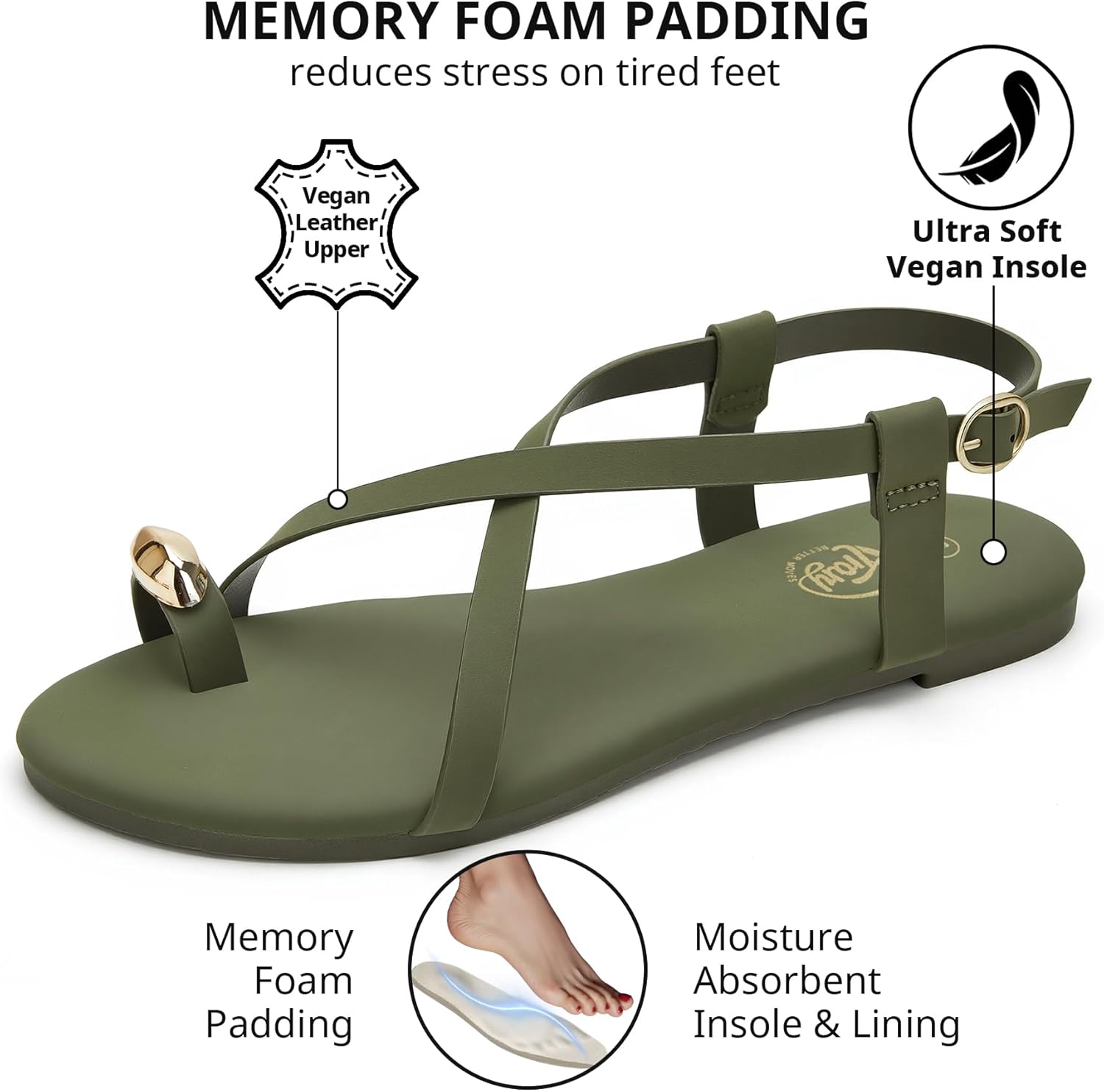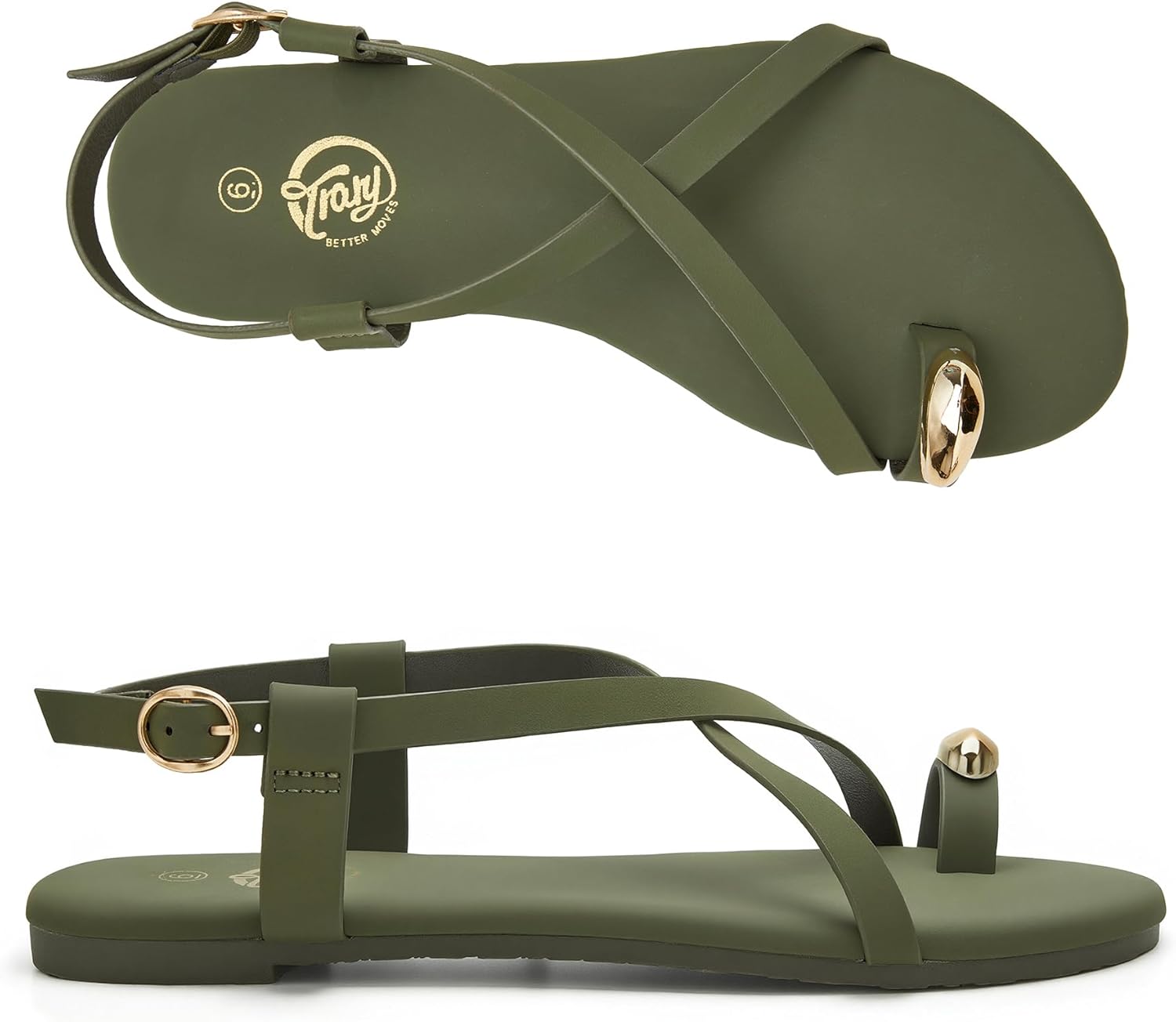 Trary Women’s Flat Sandals with Adjustable Buckle, Cross Strap Strappy Sandals Summer Casual Comfortable Toe Loop Shoes