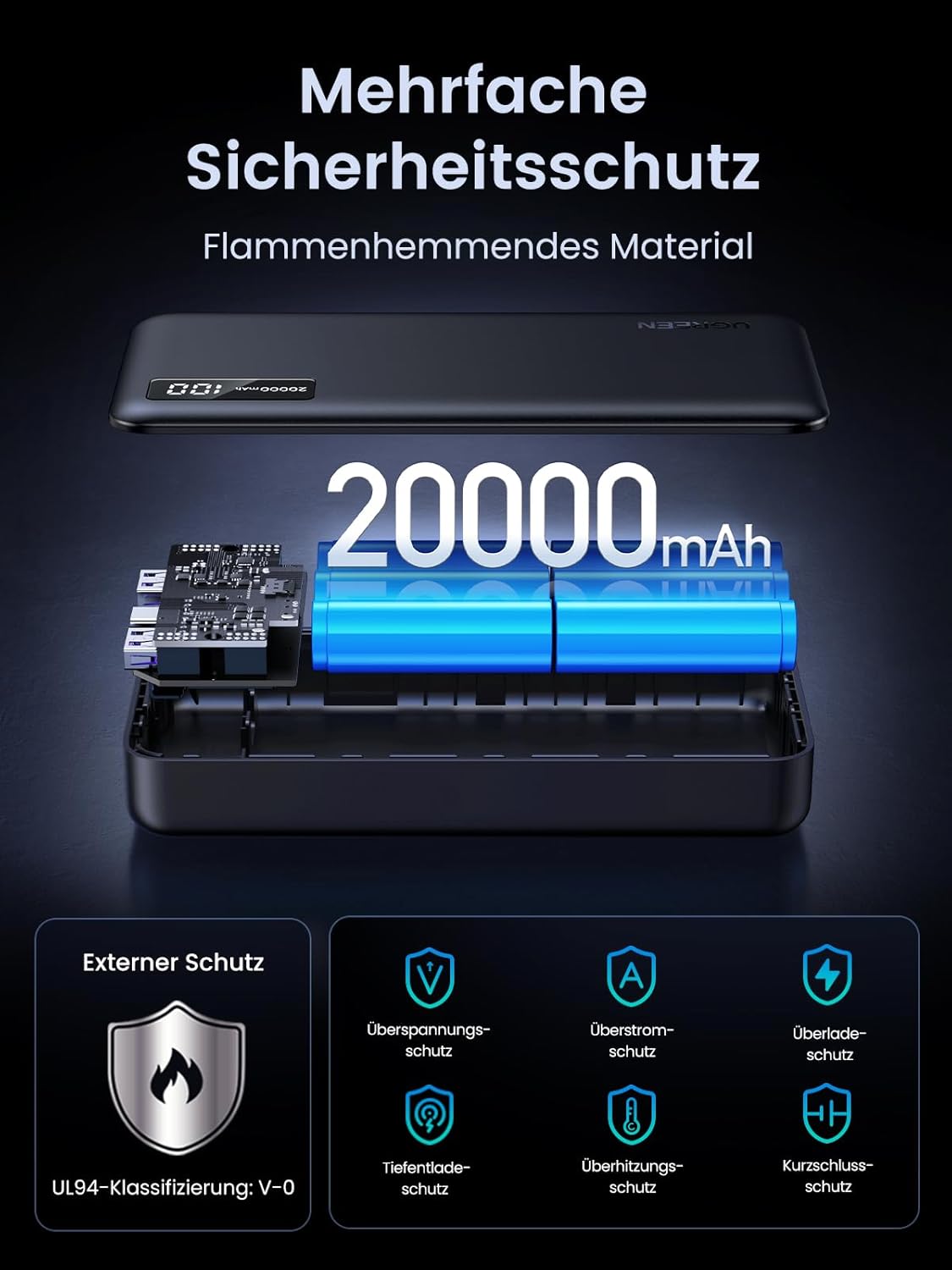 UGREEN Power Bank 20000 mAh 22.5 W, Power Bank with 1 USB-C and 2 USB-A, External Batteries Compatible with iPhone 17 (Pro/Pro Max)/8-16 Series, Galaxy S25 Ultra, Pixel 10 and More