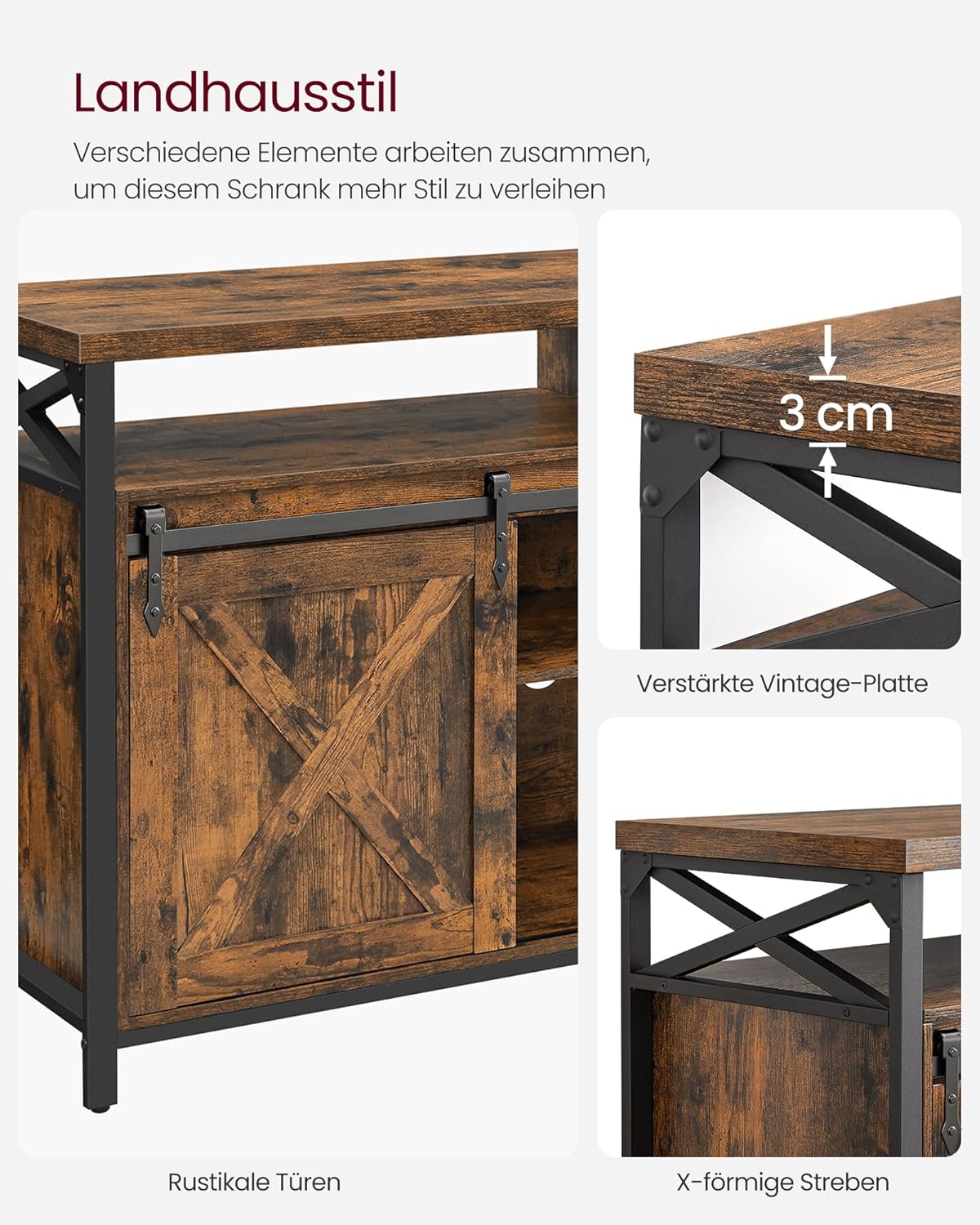 [INDUSTRIAL DESIGN] 2 rustic sliding doors, X-shaped struts, brown hue and steel – all these elements add an industrial touch to this TV shelf and make it the focal point in your living room